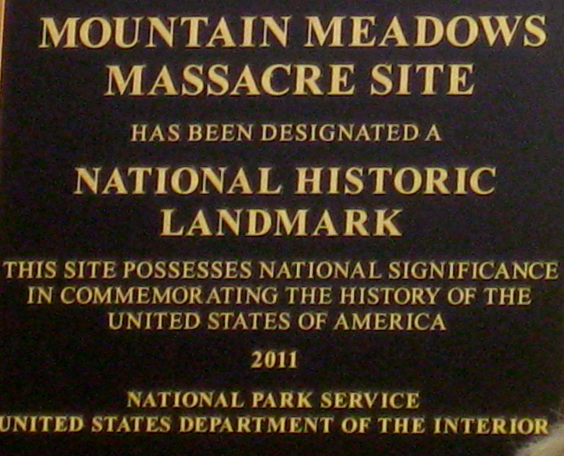 U.S. Department of the Interior plaque designation the Mountain Meadows Massacre site as a National Historic Landmark.